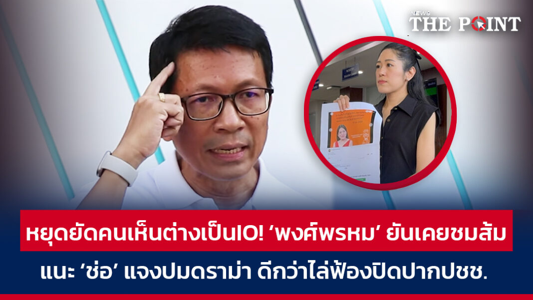 ตนต้องการชี้แจงและตอบโต้คุณช่อ แต่ไม่ใช่ในรูปแบบของการเป็นนักการเมือง เรื่องสิทธิ์การแจ้งความเป็นของคุณช่อ แต่ตนมองว่าไม่ควรใช้วิธีการการเมืองแบบเก่าๆ มาสกัดคนเห็นต่าง ถ้าคนอย่างตนโดนแจ้งความ ตนว่าเมืองไทยอยู่กันไม่ได้ มีหลักฐานจำนวนมากที่บ่งชี้ว่าตนเป็นกลาง ตนไม่ใช่แฟนพรรคใดพรรคหนึ่ง ไม่ว่าพรรคประชาชนจะทำอะไร อย่างการต่อสู้สแกมเมอร์ ตนสนับสนุน แต่ถ้าอะไรไม่ดี ตนมีสิทธิ์วิจารณ์ได้