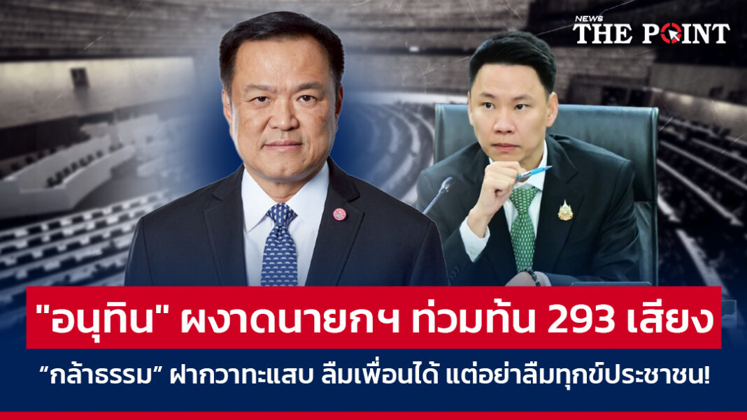 “อนุทิน” ผงาดนายกฯ ท่วมท้น 293 เสียง “กล้าธรรม” ฝากวาทะแสบ ลืมเพื่อนได้ แต่อย่าลืมทุกข์ประชาชน!