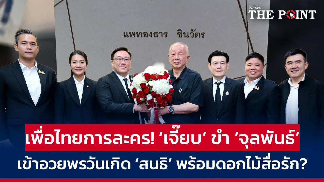 เพื่อไทยการละคร! ‘เจี๊ยบ’ ขำ ‘จุลพันธ์’ เข้าอวยพรวันเกิด ‘สนธิ’ พร้อมดอกไม้สื่อรัก?
